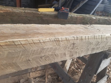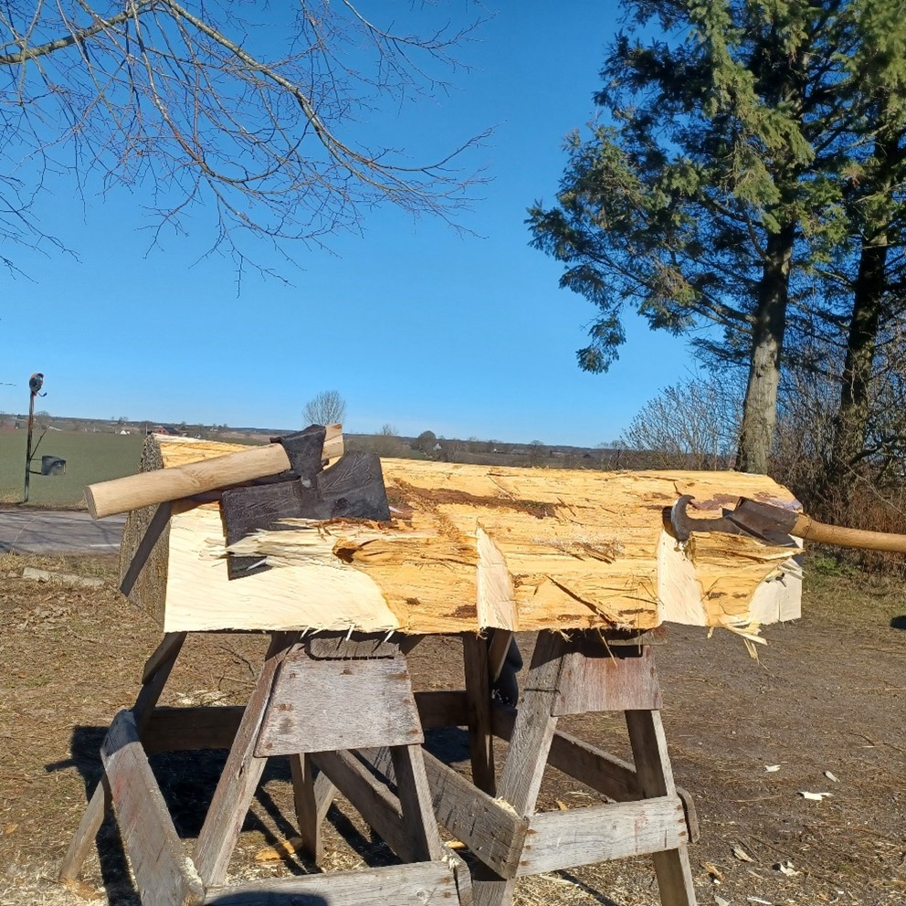 : Spretteteljing i eik utført med rundslipt øks. (Foto: Boni Wiik)
