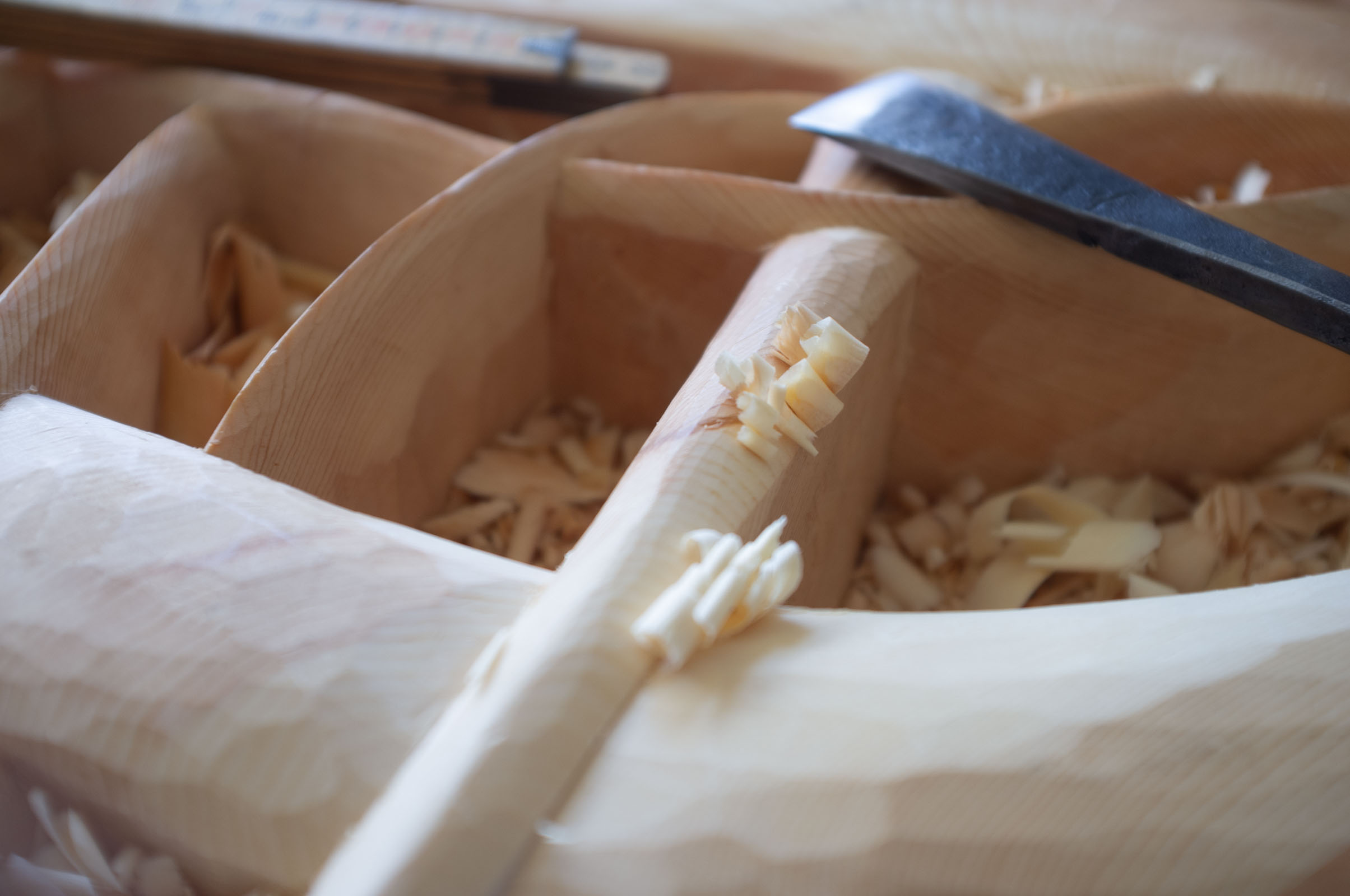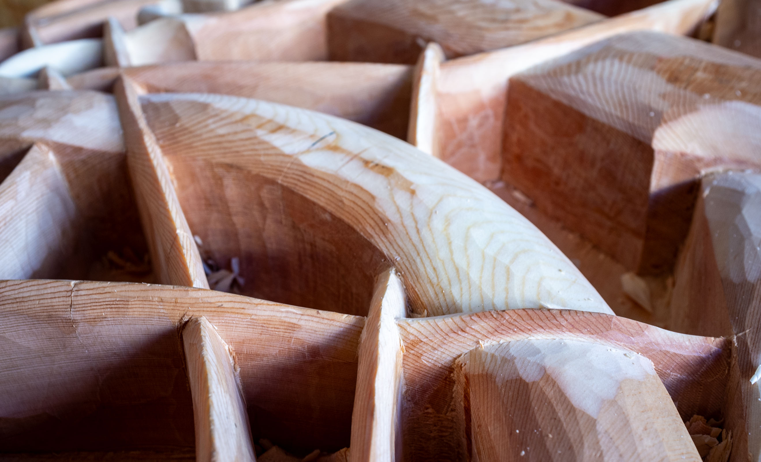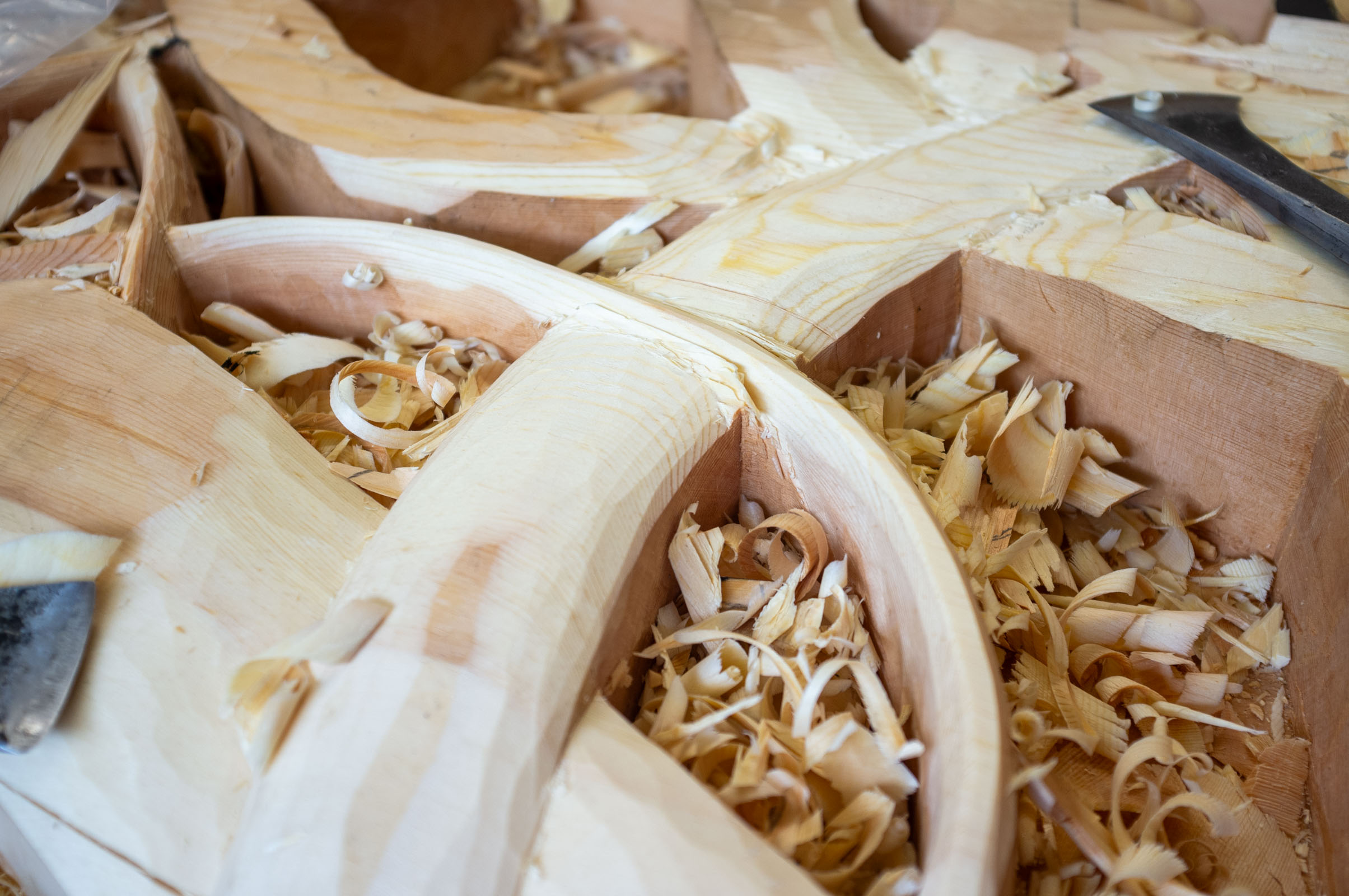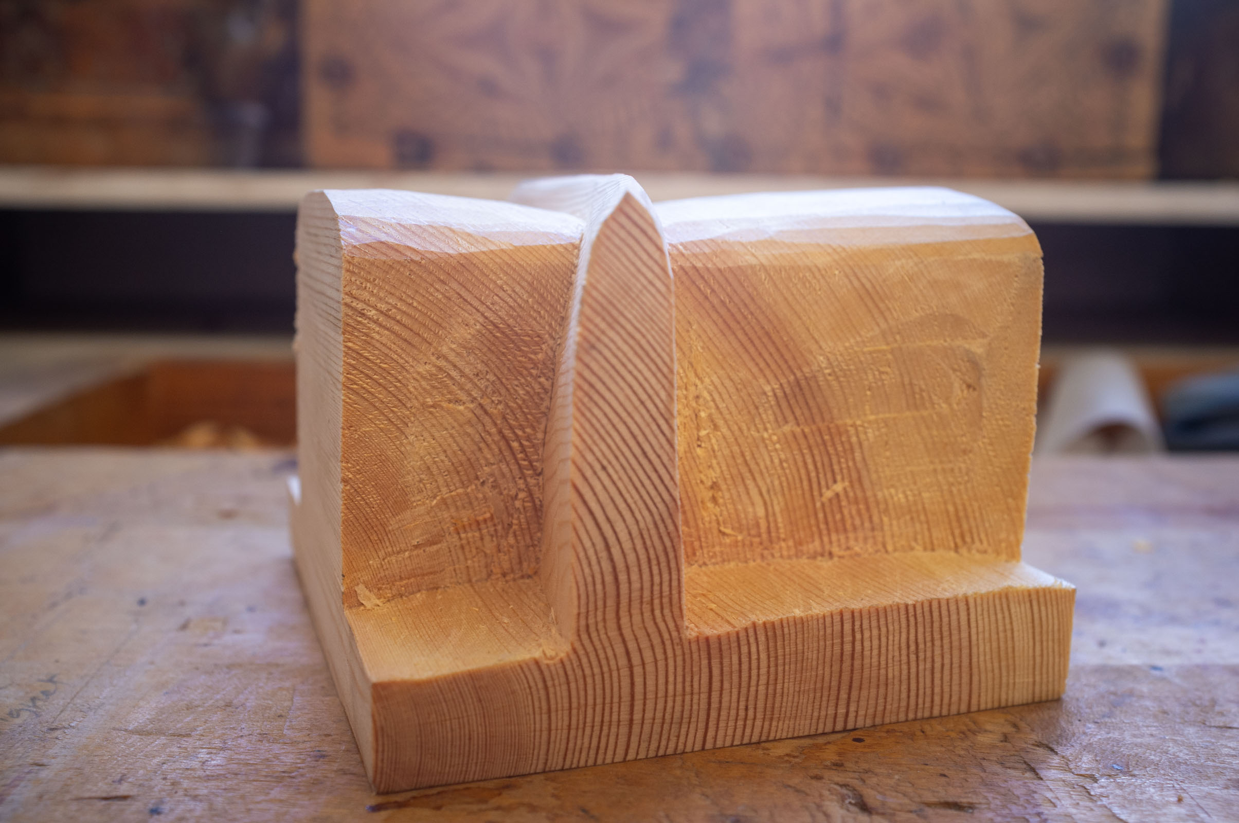 Hvordan ble de delikat avrundede toppene på ornamentet i sin tid forma? Er de skåret med et rett jern eller kniv, i form av mange små fasetter, eller er det brukt reverserte skulper – konkave jern som passer radien på det som skal formes og etterlater en helt glatt flate?