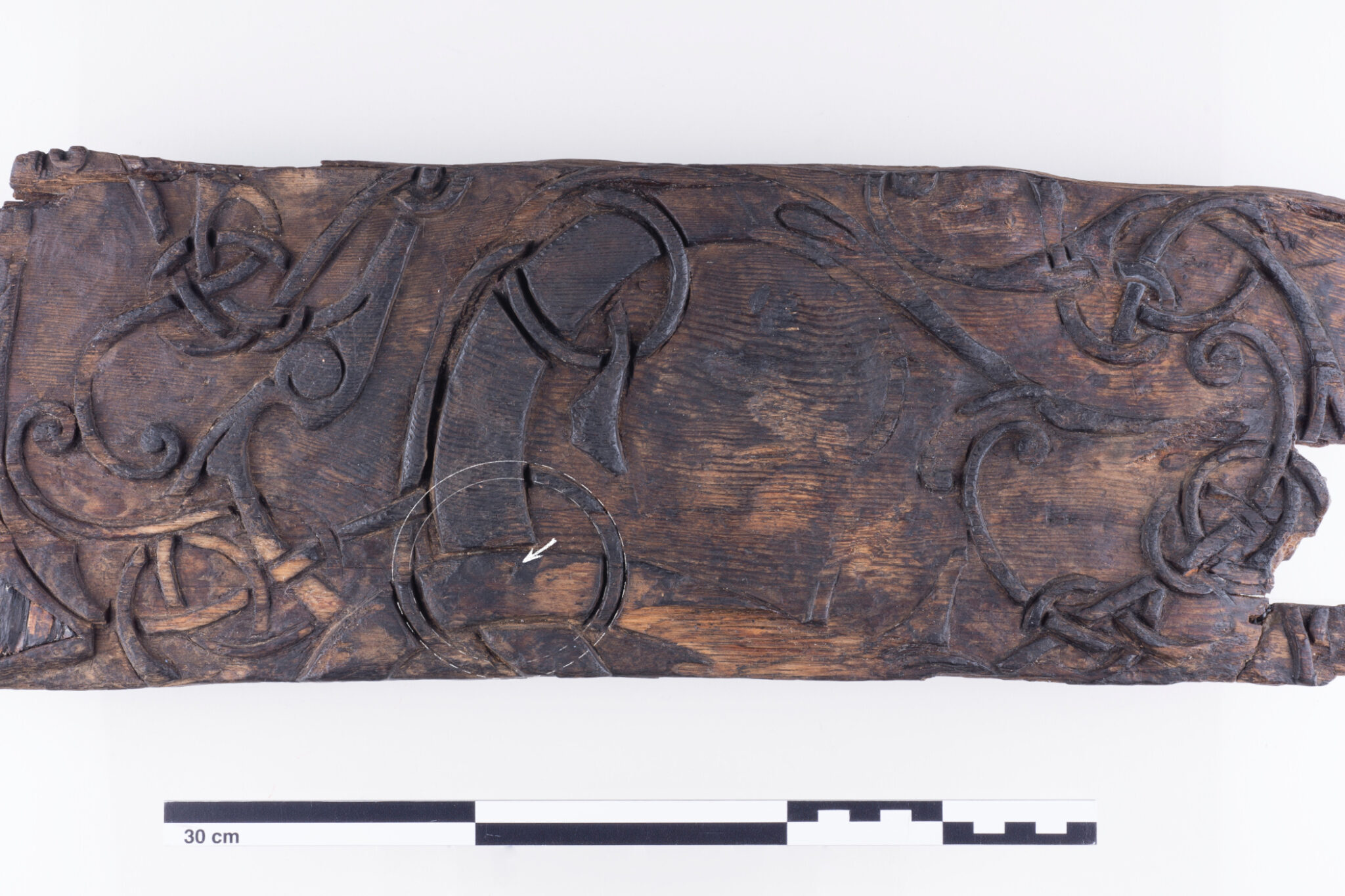 «Hoftekrøll» fra Urnes, og spor etter oppmerking.