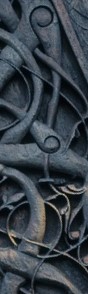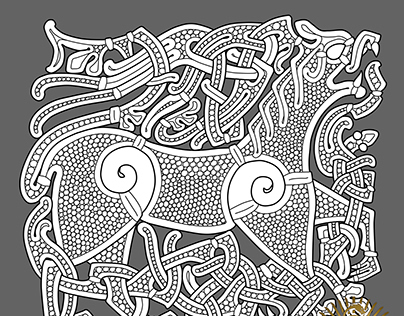 Here is a simplified description of the essence of the Urnes style: «The ornaments usually contains of a big four legged beast viewed in profile , interacting with slim serpents viewed from above. The bodies are intelacing in a web, braided together, going over and under each other every second time.»