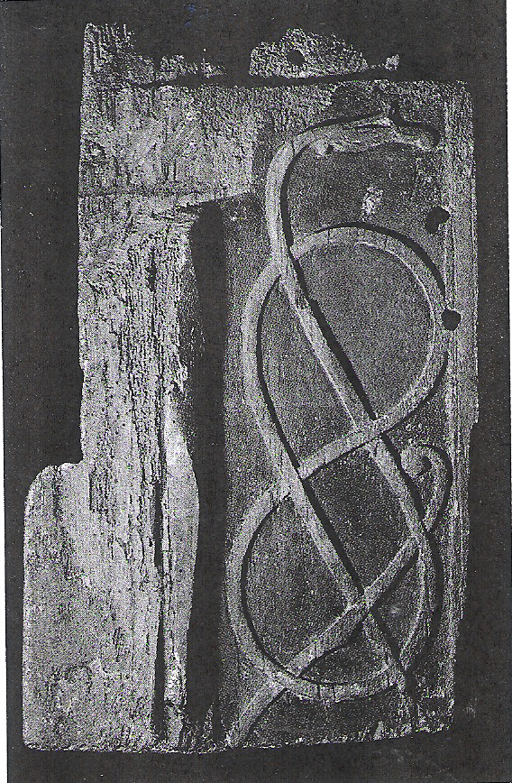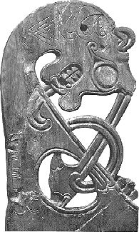 «Brågarpplanken» en døroverligger fra en tidlig trekirke i Skåne. Formatet er betraktelig mer puslete.