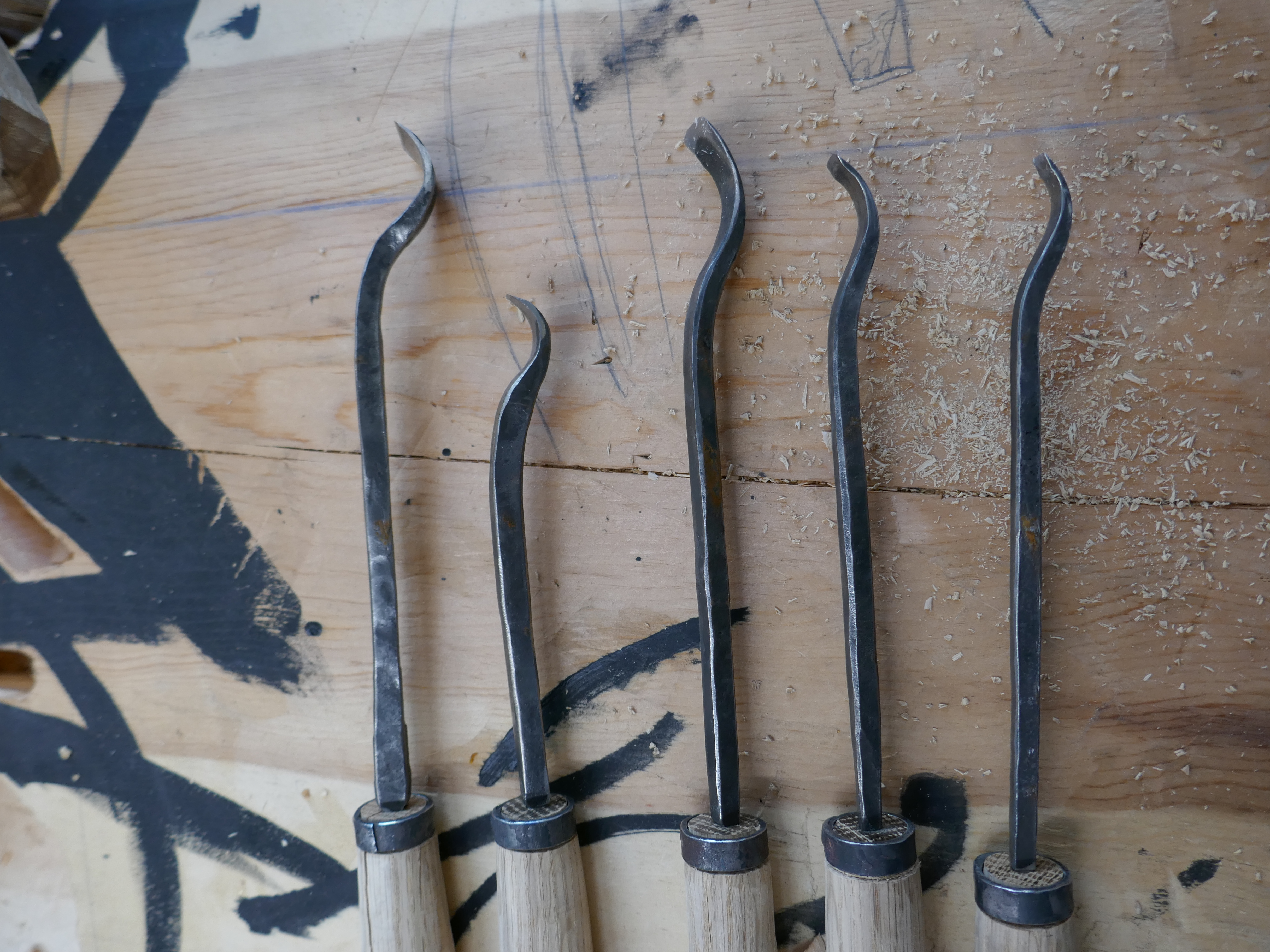 Urnesprosjektet skal som kjent hovedsaklig handle om kunnskapsutvikling og formidling, og i den forlengelse gjelder dette også treskjærerjernene som utvikles underveis i arbeidet. Vi utarbeidet et sett med jern i begynnelsen av arbeidet, ett slags grunnsett eller "startsett" som vi skulle bruke når vi jobbet med utskjæringene. Nå som vi er kommet ett stykke er det på tide med en liten oppdatering på hvordan de har oppført seg, hva funker/funker ikke, endringer etc.