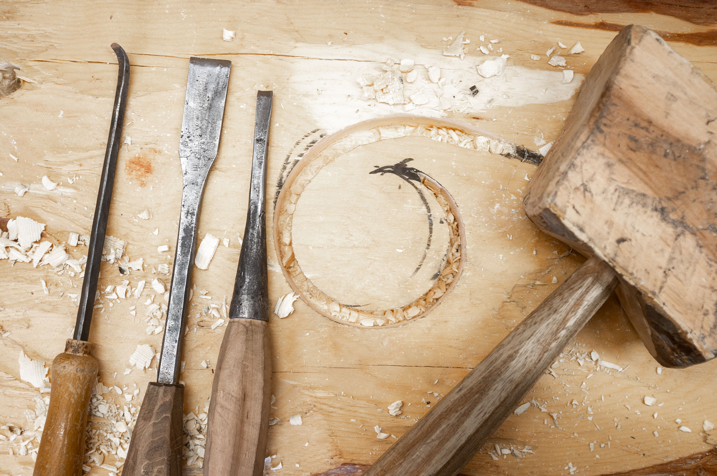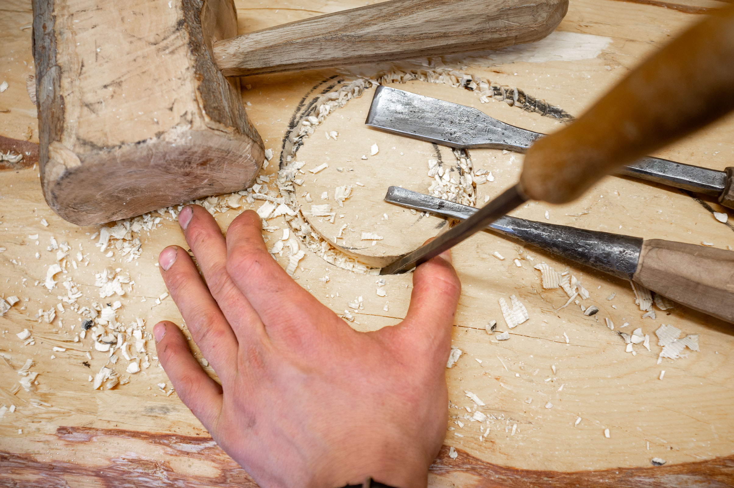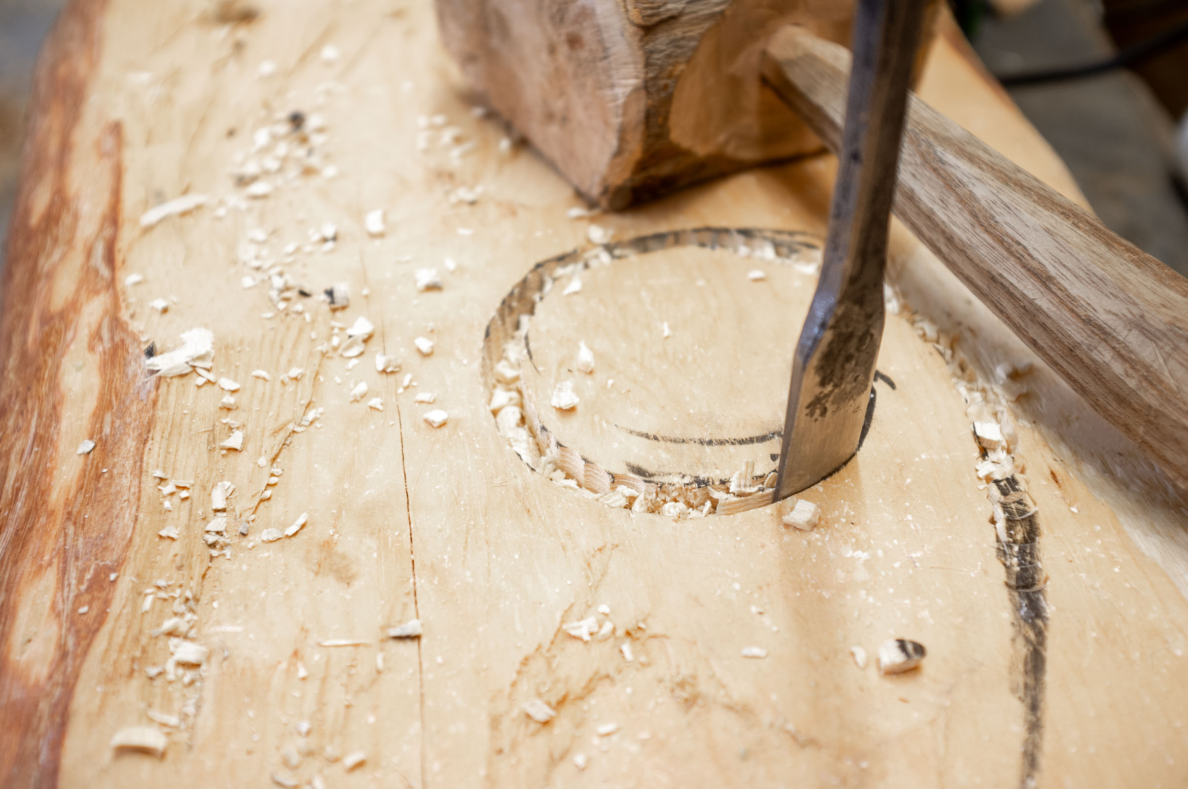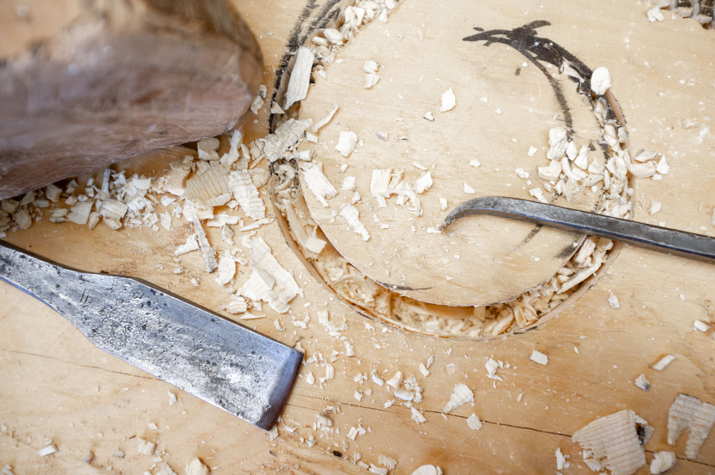 Utgraving av flis og renskjæring av bunn med et smalt bunnjern som brytes mot /pivoteres om venstre tommel eller venstre hånd. Metoden krever et helt spesielt bunnjern*, denne formen viste seg å fungere godt.