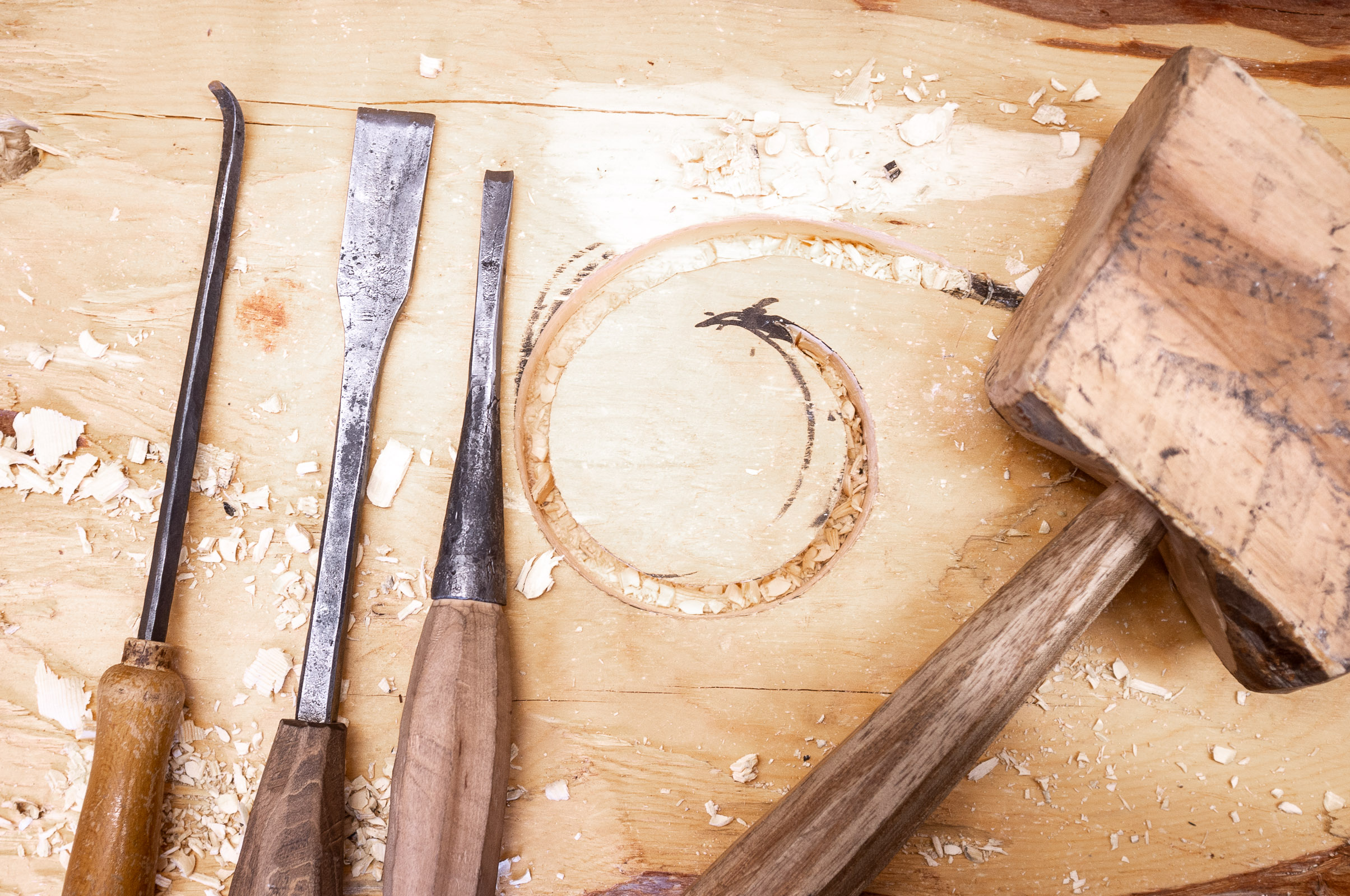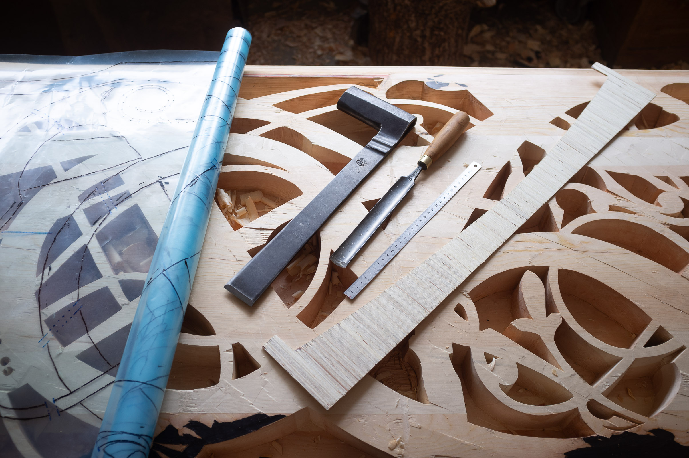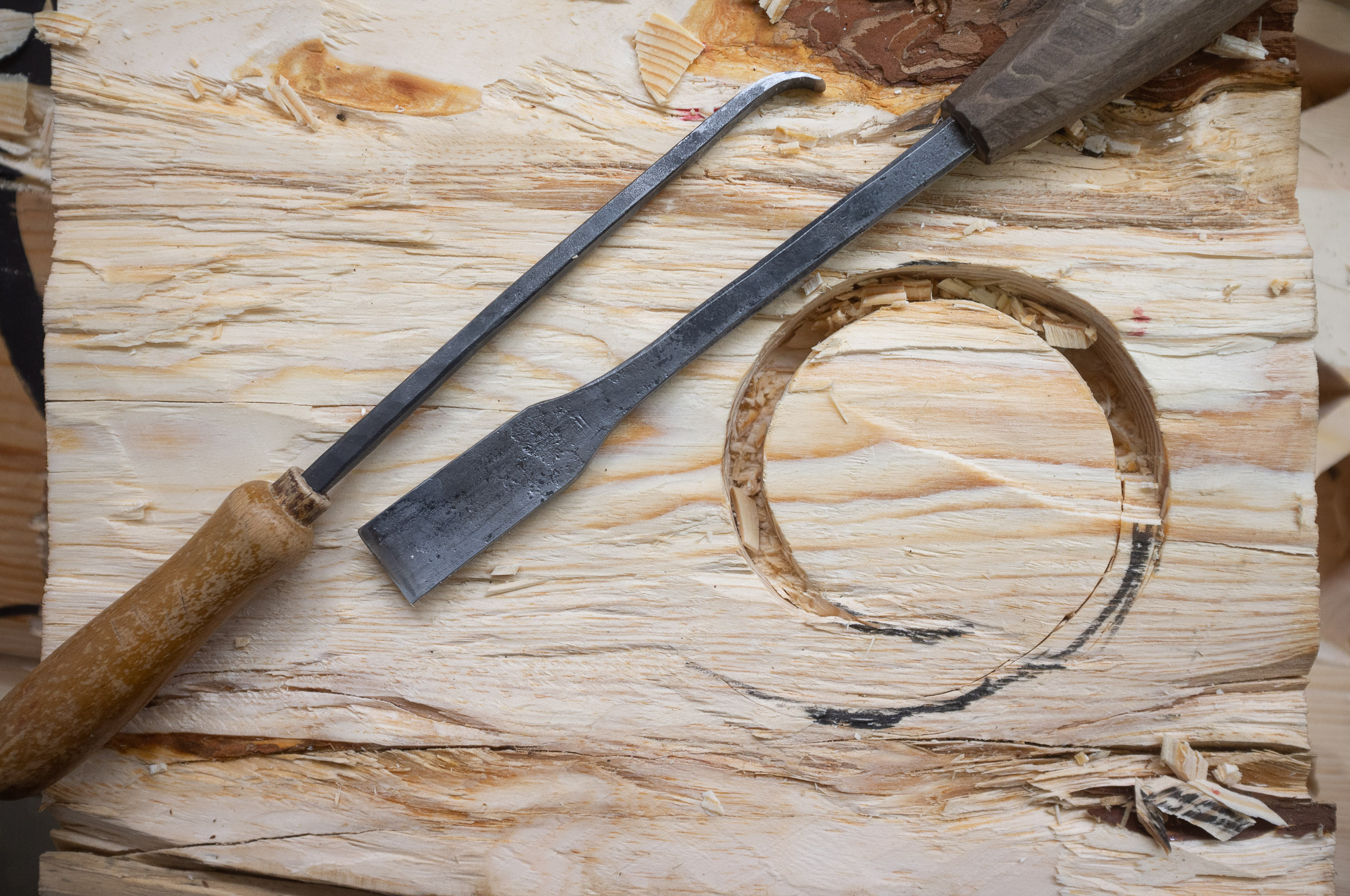 Fra oppretting av vridninga i portalplanken. Moderne verktøy siden det er en anakronistisk prosess.