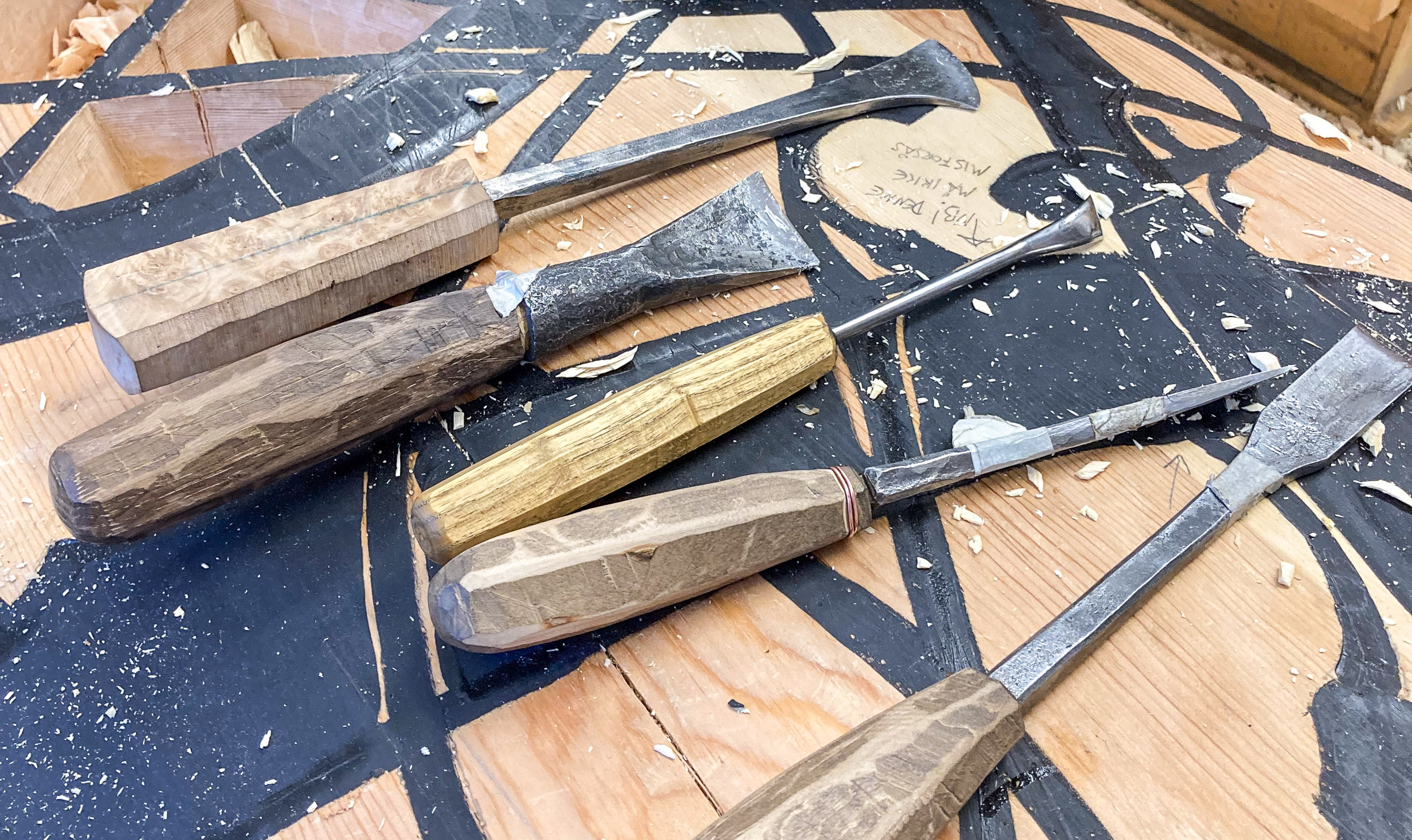 Som et lettbeint forsøk på å kartlegge verktøy og verktøybruk har jeg forsøkt å fotografere jerna jeg har brukt på slutten av hver arbeidsøkt. Stort sett har jeg hengt opp jerna blandt alle de andre vi har fått smidd på slutten av hver dag, slik at neste økt blir en test av hva jeg intuitivt eller basert på faktiske behov griper etter. Det er ikke alle økter jeg har huska å ta bilder, eller hvor det har vært mulig, og noen ganger har jerna blitt liggende til neste dag så jeg ikke har fått plukke på nytt. Men i det store og det hele blir dette et bilde av hva jeg har følt nødvendig fra dag til dag.